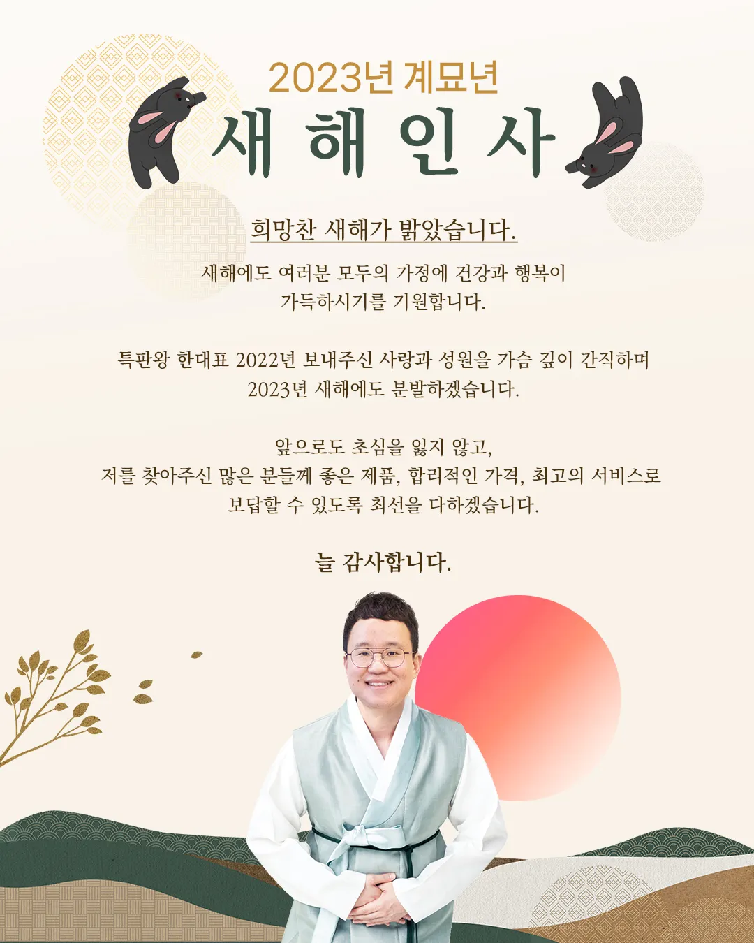 2023년 계묘년에도 항상 감사하며 성장하는 특판왕 한대표 되겠습니다. 다시 한번 감사드립니다.