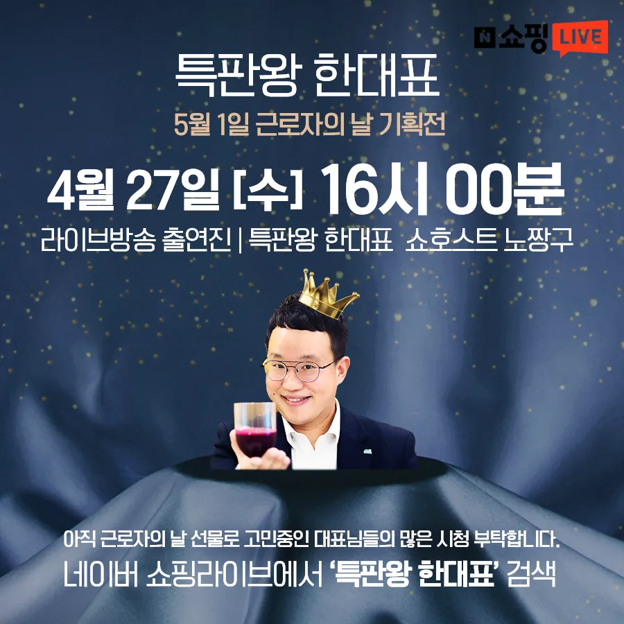 이번 라이브 방송은 근로자의 날 특판 기획전입니다.