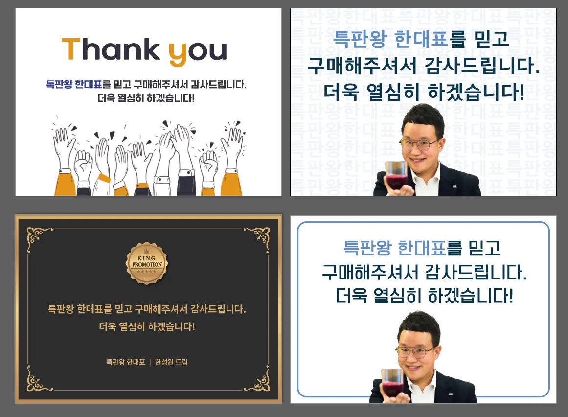 늘 특판왕 한대표를 아껴주시고 응원해주시는 VIP여러분들이 계시기에 지금의 특판왕 한대표가 있을 수 있었습니다.